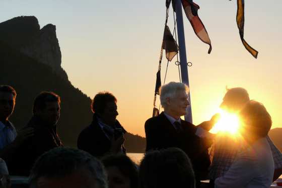 Herzlich bedanken will ich mich an dieser Stelle bei Johann Wiespointner. Er hat mir zu desem Foto auch die Text-Idee "Pirni's glühendes Mikrofon" mitgesandt. Diese Beschreibung kann für den gesamten Abend gelten. Wie auch Herr Wiespointner und seine Gattin eine "bombastische Stimmung am Mondsee" gefühlt haben.
