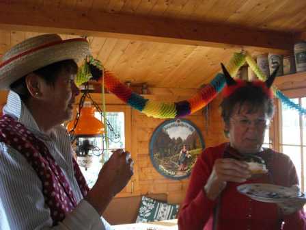 Die Teufelin rechts im Bild hat vielleicht Weihwasser berührt, könnte man meinen. Ich denke, dass dies ein ungewollter echter Schnappschuss ist. Was sie in der Hand hält sähe mir recht lecker aus.